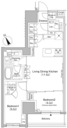 | 平米数 | 51.14m2 | 部屋詳細 | LDK11.5帖/洋室5帖/洋室4.3帖 |