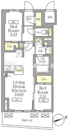 | 平米数 | 40.05m2 | 部屋詳細 | LDK10帖/洋室3.3帖/洋室2.5帖 |