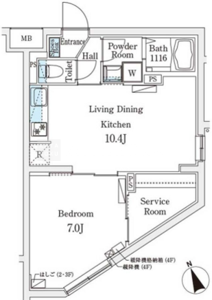 | 平米数 | 41.71m2 | 部屋詳細 | LDK10.4帖/洋室7帖/サービスルーム |