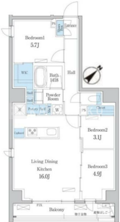 | 平米数 | 70.34m2 | 部屋詳細 | LDK16帖/洋室5.7帖/洋室4.9帖/洋室3.1帖 |