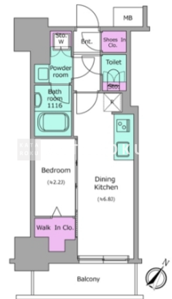 | 所在階/向き | 4階/南東 | 間取り | 1DK+WIC+SIC |