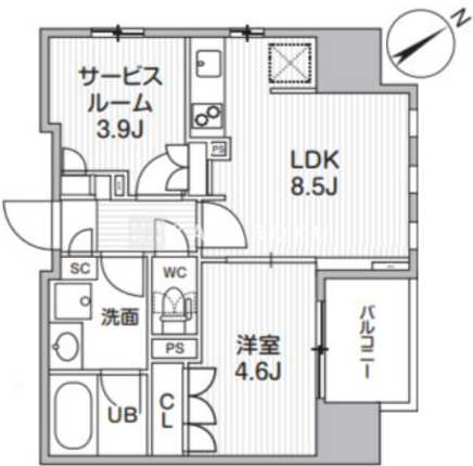 | 平米数 | 41.12m2 | 部屋詳細 | LDK8.5帖/洋室4.6帖/サービスルーム3.9帖 |