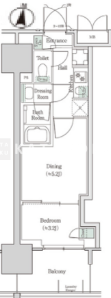 | 平米数 | 26.31m2 | 部屋詳細 | 洋室5.2帖/洋室3.2帖/K |