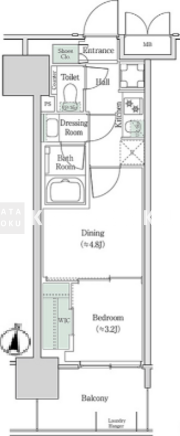 | 平米数 | 26.64m2 | 部屋詳細 | 洋室4.8帖/洋室3.2帖/K |