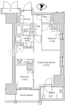 | 所在階/向き | 4階/北 | 間取り | 2LDK |