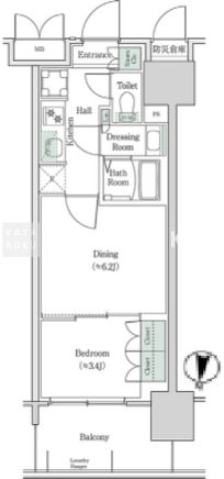 | 平米数 | 29.83m2 | 部屋詳細 | 洋室6.2帖/洋室3.4帖/K |