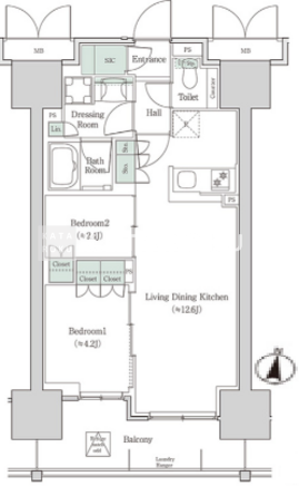 | 平米数 | 46.63m2 | 部屋詳細 | LDK12.6帖/洋室4.2帖/洋室2.4帖 |