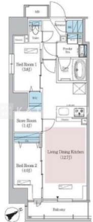 | 平米数 | 50.18m2 | 部屋詳細 | LDK12.7帖/洋室4帖/洋室3.8帖/サービスルーム1.4帖 |