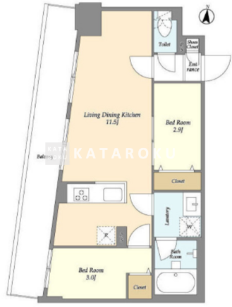 | 平米数 | 40.82m2 | 部屋詳細 | LDK11.5帖/洋室3帖/洋室2.9帖 |