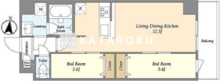 | 平米数 | 41.32m2 | 部屋詳細 | LDK12.3帖/洋室3.4帖/洋室2.6帖 |