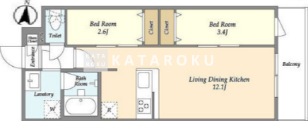 | 平米数 | 41.02m2 | 部屋詳細 | LDK12.1帖/洋室3.4帖/洋室2.6帖 |