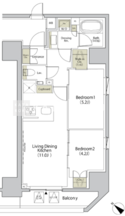 | 平米数 | 50.98m2 | 部屋詳細 | LDK11帖/洋室5.2帖/洋室4.2帖 |