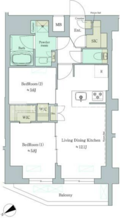| 所在階/向き | 7階/北西 | 間取り | 2LDK+SIC+WIC |