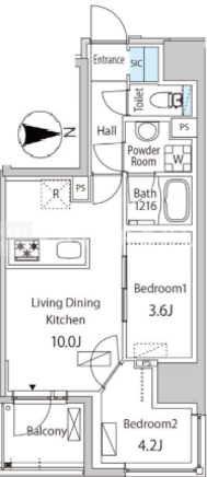| 平米数 | 41.79m2 | 部屋詳細 | LDK10帖/洋室4.2帖/洋室3.6帖 |