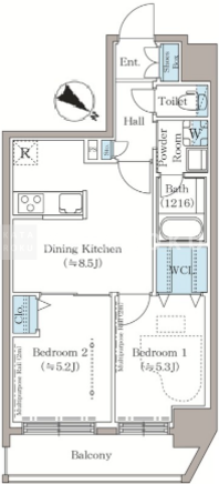 | 平米数 | 46.20m2 | 部屋詳細 | DK8.5帖/洋室5.3帖/洋室5.2帖 |