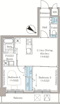 | 平米数 | 49.29m2 | 部屋詳細 | LDK9.9帖/洋室5.5帖/洋室5帖 |