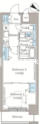 | 平米数 | 34.23m2 | 部屋詳細 | 洋室5.9帖/洋室5.6帖/K |