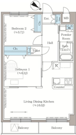 | 平米数 | 62.94m2 | 部屋詳細 | LDK16帖/洋室6.3帖/洋室5.7帖 |