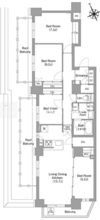 | 平米数 | 91.97m2 | 部屋詳細 | LDK15.7帖/洋室7.3帖/洋室6帖/洋室5.2帖/洋室4.1帖 |