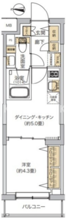 | 平米数 | 25.47m2 | 部屋詳細 | DK5帖/洋室4.3帖 |