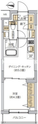 | 平米数 | 25.47m2 | 部屋詳細 | DK5帖/洋室4.3帖 |
