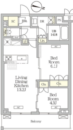 | 所在階/向き | 4階/西 | 間取り | 2LDK |