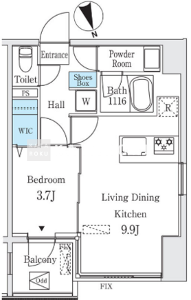 | 所在階/向き | 3階/北 | 間取り | 1LDK+WIC |