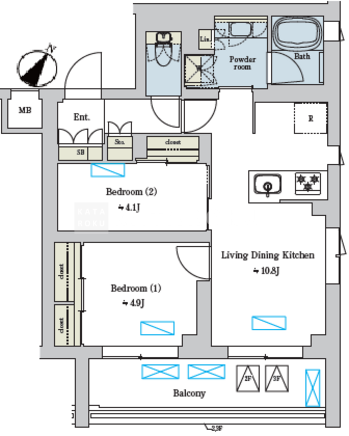 | 平米数 | 48.86m2 | 部屋詳細 | LDK10.8帖/洋室4.9帖/洋室4.1帖 |