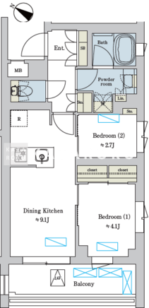 | 平米数 | 40.33m2 | 部屋詳細 | DK9.1帖/洋室4.1帖/洋室2.7帖 |