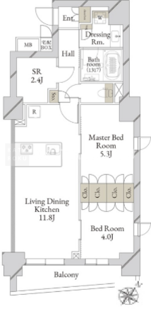 | 平米数 | 54.42m2 | 部屋詳細 | LDK11.8帖/洋室5.3帖/洋室4帖/サービスルーム2.4帖 |
