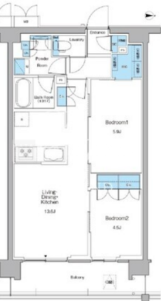 | 平米数 | 55.29m2 | 部屋詳細 | LDK13.6帖/洋室5.9帖/洋室4.5帖 |