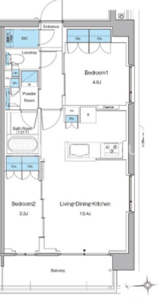 | 平米数 | 50.35m2 | 部屋詳細 | LDK13.4帖/洋室4.6帖/洋室3.3帖 |