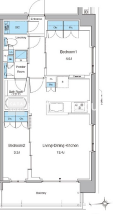 | 平米数 | 50.35m2 | 部屋詳細 | LDK13.4帖/洋室4.6帖/洋室3.3帖 |