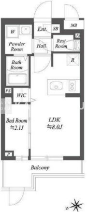 | 所在階/向き | 2階/北西 | 間取り | 1LDK+WIC |