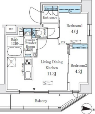 | 平米数 | 43.74m2 | 部屋詳細 | LDK11.3帖/洋室4.2帖/洋室4帖 |