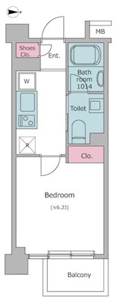 平米数 | 21.65m2 | 部屋詳細 | 洋室6.2帖/K2帖 |
