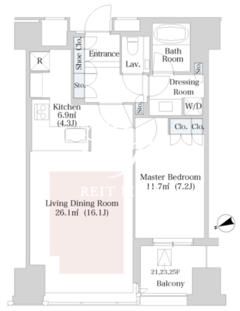 所在階/向き | 23階/北西 | 間取り | 1LDK |