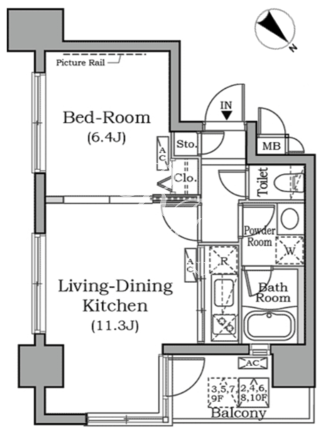 所在階/向き | 3階/北東 | 間取り | 1LDK |