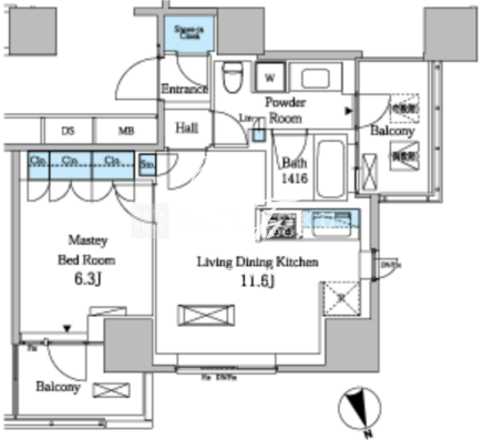 | 平米数 | 43.97m2 | 部屋詳細 | LDK11.6帖/洋室6.3帖 |