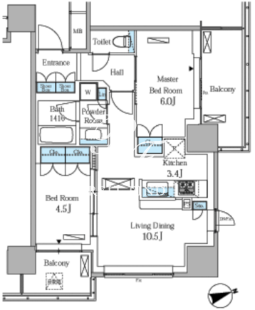 平米数 | 55.17m2 | 部屋詳細 | LDK13.9帖/洋室6帖/洋室4帖 |