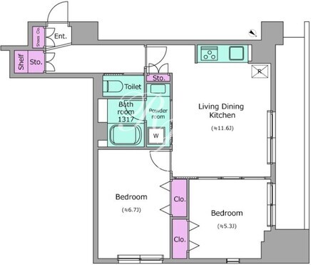 平米数 | 54.34m2 | 部屋詳細 | DK11.6帖/洋室6.7帖/洋室5.3帖 |