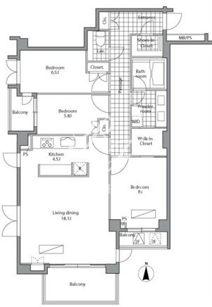 平米数 | 102.42m2 | 部屋詳細 | LDK18.1帖/洋室8帖/洋室6.5帖/洋室5.8帖 |