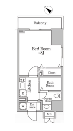 平米数 | 25.69m2 | 部屋詳細 | 洋室8帖/K2帖 |