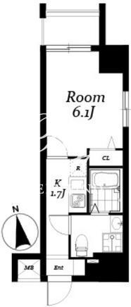 平米数 | 22.22m2 | 部屋詳細 | 洋室6.1帖/K1.7帖 |