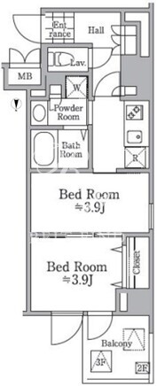平米数 | 30.73m2 | 部屋詳細 | 洋室3.9帖/洋室3.9帖/K2帖 |