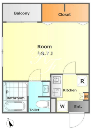 所在階/向き | 2階/北東 | 間取り | 1K |