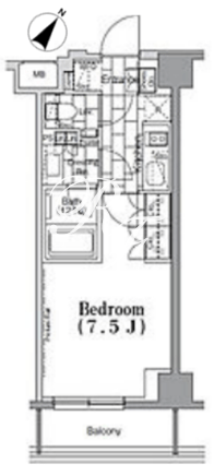 平米数 | 25.02m2 | 部屋詳細 | 洋室7.5帖/K2帖 |