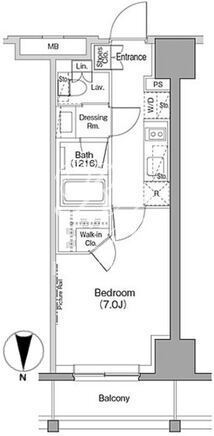 所在階/向き | 8階/北 | 間取り | 1K+WIC |