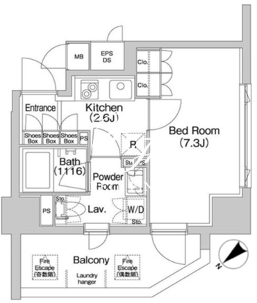 所在階/向き | 7階/北西 | 間取り | 1K |