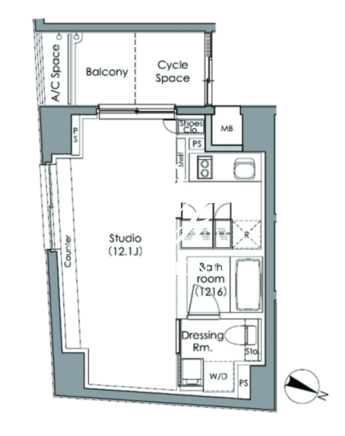 平米数 | 27.28m2 | 部屋詳細 | 洋室12.1帖 |